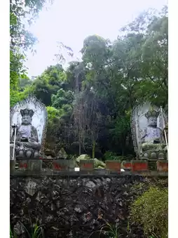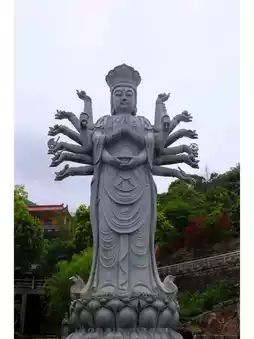 Pubu Temple, a quiet and peaceful place, nestled in the mountains and waters, with pleasant scenery. As soon as you enter the gate, the corridor on the right is lined with stone statues of the master and disciples from Journey to the West, as if telling an ancient story. Walking to the right, you will see Changxian Pavilion, a mountain spring flowing down, babbling, the sound of spring water is quiet and ethereal. Crossing the stone bridge, you will see the Thousand-Hand Guanyin standing in the pool, surrounded by various postures of Guanyin stone statues, giving people a sense of inner peace and tranquility.