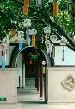 The trees in the temple are hung with many prayer wind chimes. When you go to the temple to pray, you can hear the crisp sound of wind chimes~~ with the unique tranquility and peace of the temple.