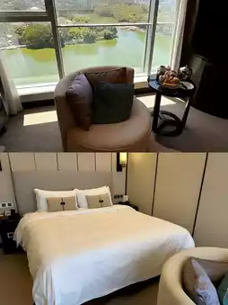 Spacious and bright spaces, exquisite decorative details, make you feel particularly comfortable. The room is also quite good. The room I stayed in had a great view 🏙️, with a beautiful view of West Lake from the window. The room's layout is simple yet cozy, and the bedding is very comfortable, making you feel all the fatigue of the day disappear 💤. The room's cleanliness is also very well done, spotless.