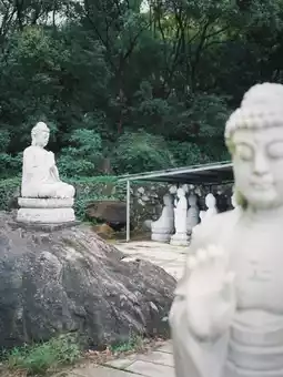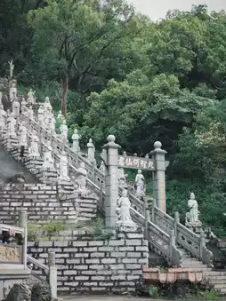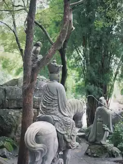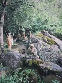 500 Arhat Statues on the Mountain: Located on the right-hand side of the mountain road after entering the main gate, the rain adds to the atmosphere, making it suitable for light hiking. Along the way, you can see many Arhat stone statues with different faces and gestures, which are extremely impressive and show the ingenuity of the craftsmen of the time.