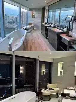 🛀The view from the bathtub on the top floor is really impressive! The night view of the city at night and the bustling city in the morning give you two completely different experiences, and the space in this bathroom is really generous, giving you a sense of nobility.