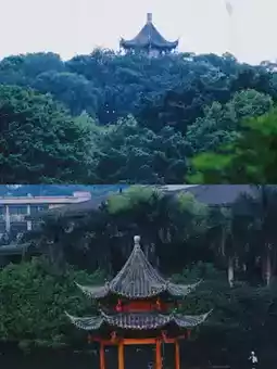 Going further, I saw the waves of Fuzhou West Lake, with an ancient pavilion standing on the lake. I told my friend that I remembered that there was also an ancient pavilion in Hangzhou West Lake, which extended from the shore into the water. At this moment, the West Lakes of the two cities overlapped in my mind, with shimmering water and misty mountains, perfectly balanced.