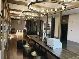The library on the first floor is available for free borrowing and contains a good selection of books