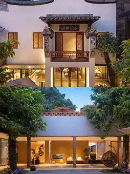 The hotel has been beautifully transformed from a century-old residence, exuding Ming and Qing architectural charm with ancient banyan trees, white walls, and green tiles that paint a Jiangnan ink landscape. Step inside and instantly travel back to a time of ancient elegance.