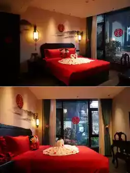 💡 Sanbao Mansion’s signature garden wedding room is a mansion suite with one bedroom, one living room, and a private courtyard, fulfilling couples’ dreams of a traditional Chinese garden wedding. The room is elegantly decorated in warm tones, creating a soft and refined ambiance. The entire structure is wooden, with furniture made of rosewood, providing ample space for unforgettable moments🎞