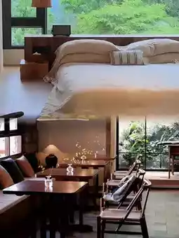 - Themed rooms like "Mountain Whisper Art Lodge" and "Forest Art Retreat"🏡 feature hand-painted walls and artistic decor🖌️. Some rooms include private garden terraces🌼 for misty mornings🌫️ and starlit nights🌌.
