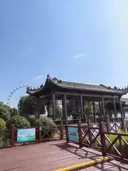 The park covers an area of 2.08 million square meters and is planned into botanical garden areas, amusement park areas, beach leisure areas, island fishing village areas, and seaside hotel areas. It features a historical and cultural corridor, Red Beach, Colorful Garden, Sculpture Garden, Agricultural Garden, Maze Garden, Bonsai Garden, Jiulong Spring, Beihai Zen Temple, beach bathing area, beach sports field, marine erosion landscape, Happy Island, commercial area, and seaside hotel area, forming "one belt, seven zones, and twenty-nine attractions." The tourist area includes a long beach with clear water for swimming, marine erosion reefs for exploration, quiet capes for fishing, and ancient fortresses for historical exploration.