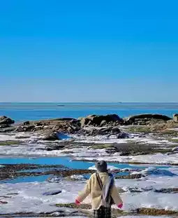 I've seen the sea countless times 😜, but this is my first time seeing a frozen sea in winter 🌊. Here, you can enjoy the boundless beauty of snow ❄️ and the romantic charm of the sea 💖. As you walk along the frozen seaside 👣, stepping on the soft snow, the snow glistens in the sunlight ✨. Wow, this feeling is so healing and beautiful 🩵.