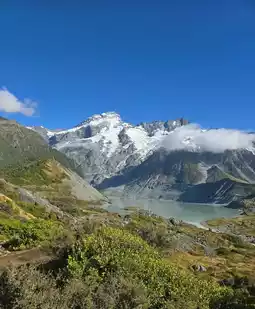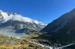 Walking along the trail is like stepping into a flowing landscape painting. Along the way, the pristine natural scenery of New Zealand is breathtaking. Above, snow-capped peaks rise majestically, and in the distance, the spectacular Mueller Glacier stretches out. The trail also passes over three swing bridges and by two glacial lakes, Mueller Lake and Hooker Lake, whose waters are unbelievably clear.