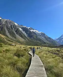 The most popular hiking trail in Mount Cook National Park is undoubtedly the Hooker Valley Track. This 10 km trail consists of gravel paths and boardwalks, and it's not difficult at all. Even a hiking newbie can easily handle it. The round trip takes about 3–4 hours, making it suitable for people of all ages and fitness levels.