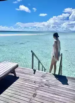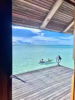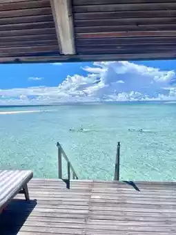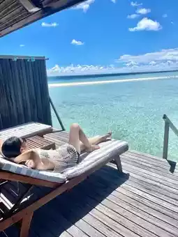 This time we chose the "Gangesi" resort island, 5000rmb/person (four nights in a water villa), there are sand villas and water villas. We chose a four-night water villa, which includes three meals a day and some soft drinks. There is a beach with a tail, it is so beautiful! I think the water house he gave us has the best location. It is very close to the restaurant. Downstairs of the water house is the Tail Beach, facing the direction of the sunset. The feeling is wonderful. You can lie on the lounge chair outside the water house to watch the sunset 🌅, and you can also snorkel with many crabs and small fish under the water house. You can also play kayaking for free🚣. We were very busy that day. We took photos, played kayaking, went snorkeling, and watched the sunset. The scenery was beautiful, very nice! 👍