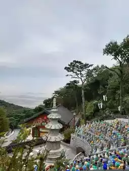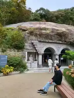 This is Bomunsa Temple with a wonderful view of the West Sea. The rock-carved Buddha is amazing, but