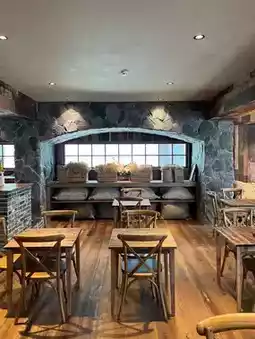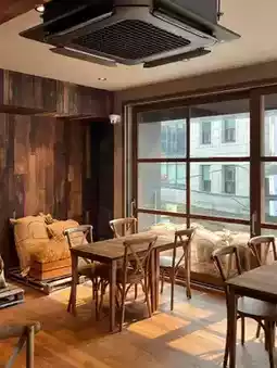 This large 4-story cafe, reminiscent of a grand mansion, features European-style decor.