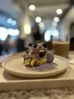 It wasn't too sweet, and the sourness of the blueberries and the fluffy dough were exquisite and delicious😋💜