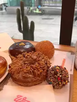 The open kitchen allows you to witness the donut-making process up close—the aroma of freshly baked donuts wafts through the air. New menu items are also frequently added, ensuring a new donut experience every time you visit.