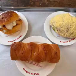 At Bouquet de Pain, I ordered their signature Tiramisu Latte ☕️, White Salt Bread 🥖, Brioche Feuilletée 🥐, Béchamel Shrimp 🍤, and Chamomile Tea 🌼.