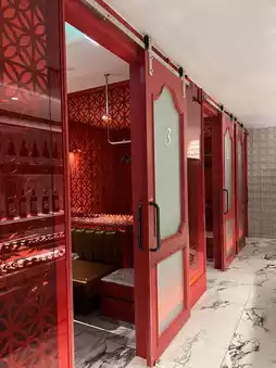 The entrance feels like a luxurious wine bar,