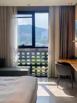 The Hongssi Hotel, which has a Southeast Asian vibe, is located in the center of Gangneung, so you can enjoy not only Kyodong Jjamppong, but also Gangneung Central Market in 10 minutes by car, Gangmun Beach in 15 minutes,