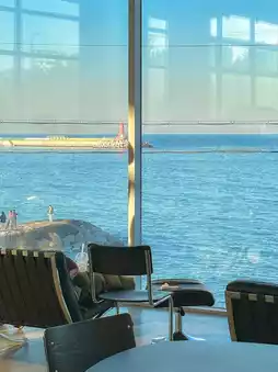 You have to prepare yourself to be properly treated to the refreshing sea color seen through the large window,,, 🥴💎 Right in front of the Goblin filming location, Jumunjin Kosuttakki🪄