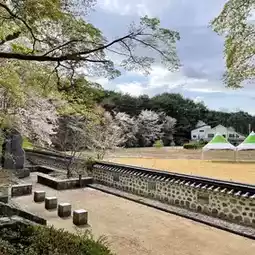 (When I visited on April 6, the cherry blossoms were already falling.)