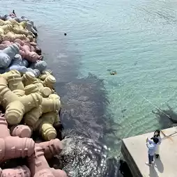 The color of the sea water sparkles emerald, and it goes well with the colorful breakwaters, so just looking at it feels healing! Don't miss out on the fun of going up to the observatory and looking out at the wide open sea!