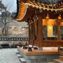 The outdoor photo zone with a traditional house is a must-visit spot for taking pictures.