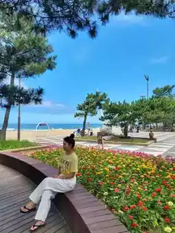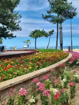This is my thirteenth trip to Gangneung, and I have visited Gyeongpo Beach every time I have visited, but I liked it even more because it has a beach park feel with sculptures and zinnias that I have never seen before.