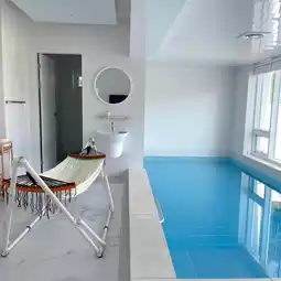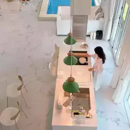 The first floor is spacious enough for a large family to stay, with a white-toned kitchen and living room, a neat bedroom, and a lukewarm pool🏊🏻♀️