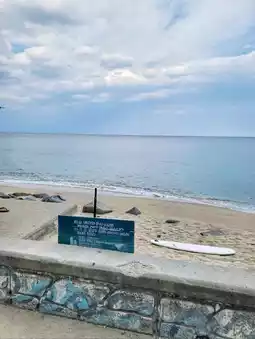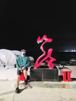 The sea water was really clear and pretty, and the logo sculpture was pretty,