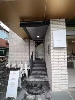 However, the second floor of the cafe directly in front of us was a waiting room where we could sit and wait. The turnover was fast, and we were able to get in after about a 20-minute wait.