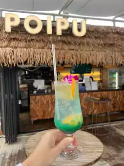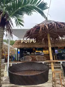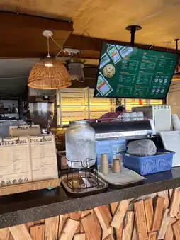This shop is right in front of the ocean and is a popular place for surfers to come for lunch.