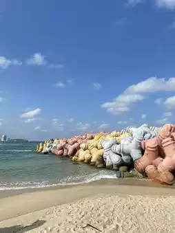 Taking pictures with the colorful rainbow tetrapods at Sagunjin Beach