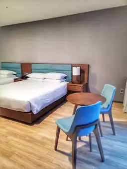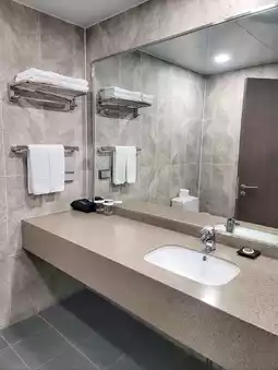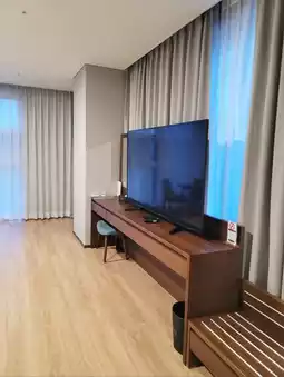 The room was a little old, but it was still very spacious, so it didn't feel stuffy at all, and there were no carpets, so it was fortunate for us who have rhinitis