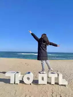 There is a ring-shaped photo zone at Gangmun Beach, and it's so cute...🤍 It's designed to make you want to take pictures, so try taking one!