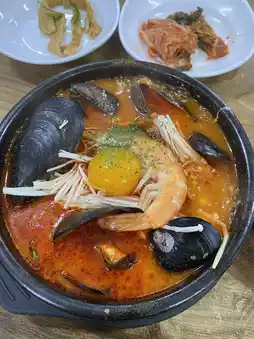 Then we stopped by a famous Jjamppong restaurant in Gangneung, but we were late and very hungry. It was past the closing time for lunch, but the owner was kind and allowed us to go in and eat, so we got to eat the famous Jjamppong. They make their own noodles here, and we sat and ate while watching them prepare the noodles for the evening opening. It was another kind of fun. There are more than 20 types of side dishes here, all homemade. Everything was delicious, just like a famous restaurant. 😋😋 Too bad I can't remember the name of the restaurant.