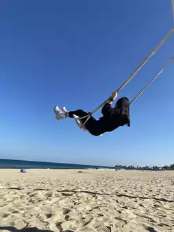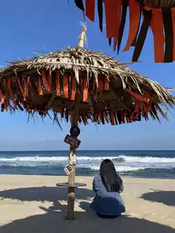 The beach here has white, clean sand, contrasting with the blue sea. And the sky is beautiful, the atmosphere is really good.