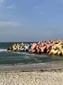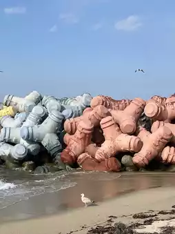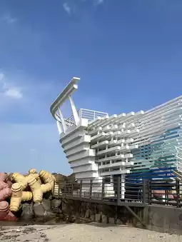 This is Sagunjin Beach! Sagunjin Beach is famous for its colorful breakwaters and is a popular SNS photo spot.