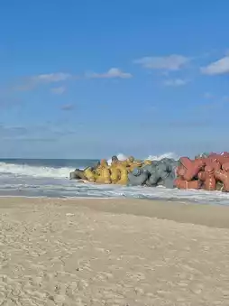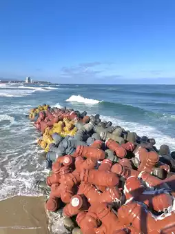 This is Gangneung Sagneunjin Beach, famous for its pretty and colorful breakwater.