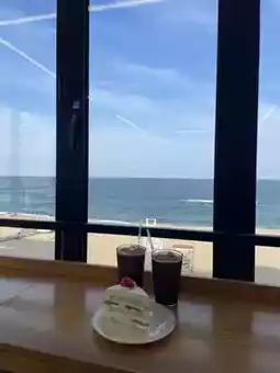 While eating warm coffee and bakery Perfect for a seaside getaway!