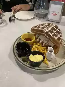 This place sells really unique menus! They are waffle burgers and pancake burgers! It was a combination I never imagined, but I was so surprised because it was so delicious٩(๑❛ᴗ❛๑)۶ The French fries that came with it were also really delicious!