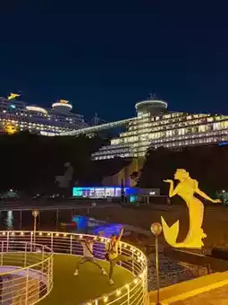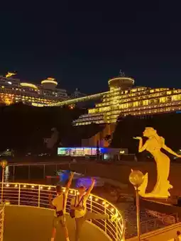 The resort’s design emulates a cruise ship, complete with features like: