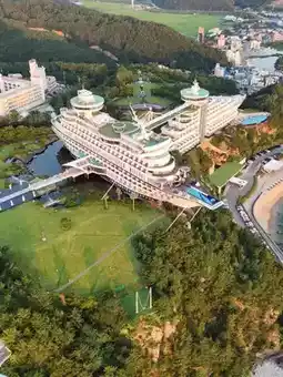 The Sun Cruise Resort & Yacht, perched atop a cliff in Jeongdongjin, Gangneung, offers a unique experience with its cruise ship-inspired architecture and panoramic views of the East Sea.