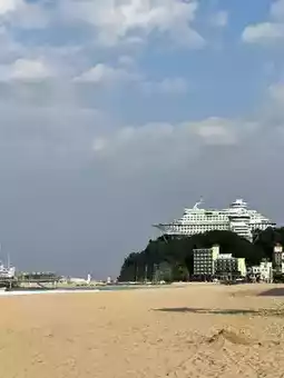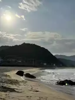 There weren't many people, making it a great place for a quiet walk or to relax while gazing at the sea. The surroundings of the beach were also well-maintained and clean. It was a place where you could fully feel the emotional impact of nature.