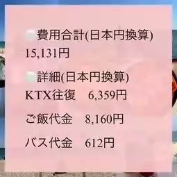 Details: Meals 8,160 yen, KTX 6,359 yen, Bus 612 yen