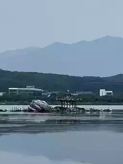 🌳 The tranquil Gyeongpo Lake trail was bustling with bicycles speeding joyfully. The pavilion in the middle of the lake added a charming touch. While the waves at the beach were rough, the lake remained as calm as a picturesque painting.