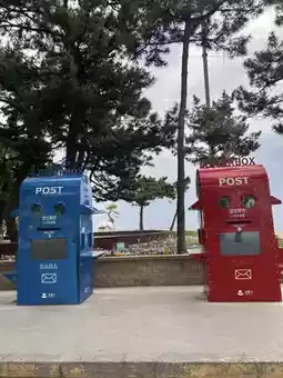 🌲 In front of Gyeongpo Beach, there are red and blue mailboxes known as "slow mailboxes." You can send postcards to the future here.
