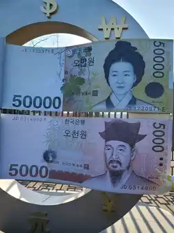 It is marked on the ground so that you can take a picture with the 5,000 won note in the background.