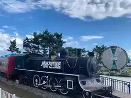 Station Highlights: On the platform, there were a few picturesque pine trees, some statues, and a model rail bike – I instantly knew it was iconic for Jeongdongjin, and it was perfect for some quick photos.