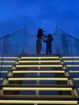 After dinner, we visited **Cafe ‘Got;’** located in front of Sacheonjin Beach. We took photos at the “Stairway to Heaven” photo zone, and the kids enjoyed Häagen-Dazs ice cream while the adults had plum pomegranate ade, coffee, and the signature chestnut bread. The chestnut bread was absolutely amazing, but unfortunately, the signature coffee was sold out. (We went back on the second day, but it was sold out again…😢)