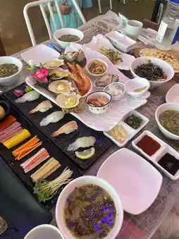 After playing at the beach, we had dinner at Messi56. The kids enjoyed their free meal of grilled salmon and soup, while my spouse and I savored fresh sashimi bibimbap. We didn’t have to wait in line, and the food was definitely worthy of its reputation!